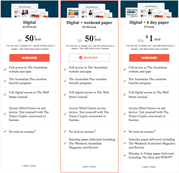 Subscription pricing for The Australian today replicates this “irrelevant alternative”, though in a slightly different way to the pricing architecture Ariely examined.